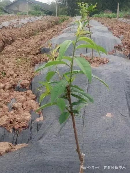 1. 定植当年,视苗木质量,如果是成品苗,粗度在0.8cm以上者,苗也很健壮,只将分枝疏掉,不截中干。因分枝上都有花芽,全是结桃枝,定植当年只求苗木成活,而不能追求产量,开花结桃会影响苗木的成活率及营养生长;如果苗木质量差或者因远距离运输而脱水,那就得重剪到距地面20cm左右,一定要剪在本品种的枝段,千万不能将该品种剪完留下实生砧。幼苗剪的越重,来年生长势越旺盛。如果是半成品苗(芽苗),可在本品种