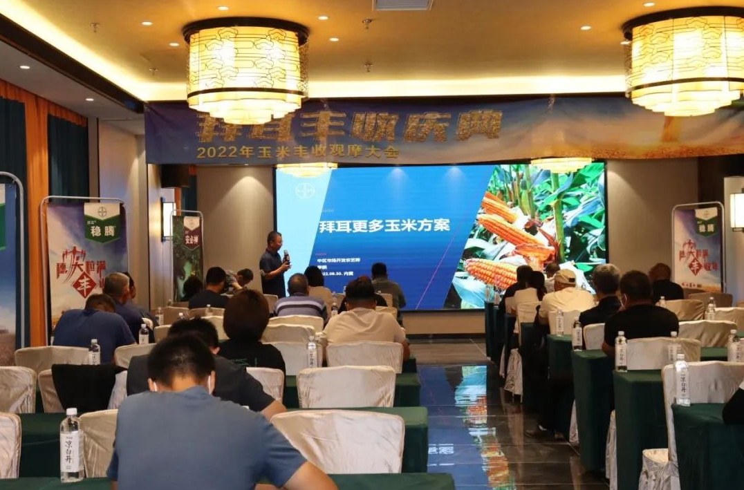 第五个中国农民丰收节的庆祝热潮还未褪去,9月30日,河南.安阳。正值玉米收获的时期,拜耳丰收庆典2022年玉米丰收测产大会成功召开。此次活动采取线上直播和线下会议联动的形式展开,线上累计吸引了50万人次观看。此次庆典有安阳市植保站站长王刚、河南省爱苗农业科技服务有限公司董事长宰运立、拜耳市场部杀菌剂资产经理李亚东、拜耳市场部中区市场经理李建中、拜耳市场开发部高级农艺师李鹏、汤阴县农博伟业专业种植合