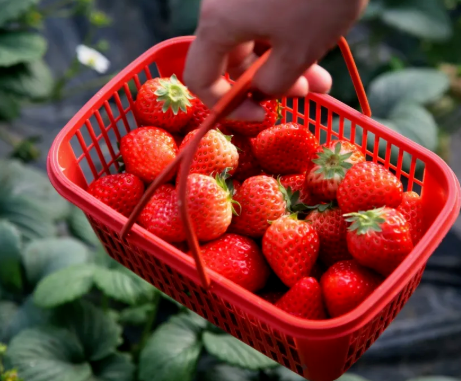 草莓虽然坐果期长,但成熟浆果的保鲜期只有1~2天,并且果皮薄软,极易碰伤腐烂。因此,要掌握正确的草莓采收保鲜和包装运输技术,确保实现保产增收。确定草莓的成熟度最重要的指标就是果面着色的程度,草莓在成熟过程中果皮红色由浅变深,着色面积由小到大。同时也可参考果实硬度的变化确定采收期,果实成熟时浆果由硬变软,并散发出诱人的草莓香气,表示果实已经完全成熟,采收应在果实刚软时进行。那最重要的,在采收前后应该