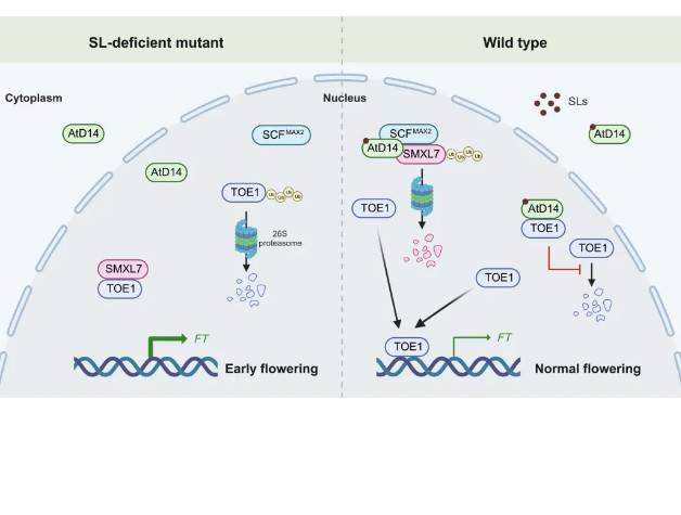 在植物生长发育过程中,开花时间的调控至关重要,它直接影响着植物的繁殖能力和作物的产量。因此,深入研究和优化开花时间的调控机制对于提高农业生产效率和保障粮食安全具有重要意义。近日,湖南大学、岳麓山实验室姚瑞枫团队在The Plant Cell期刊上发表了题为The strigolactone receptor DWARF14 regulates flowering time in Arabidops
