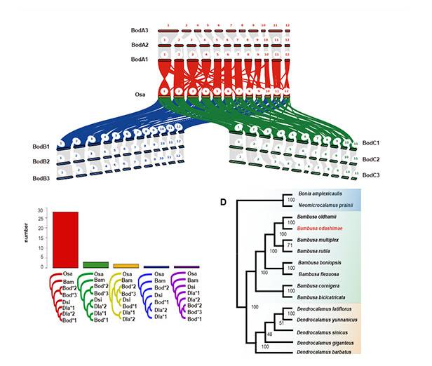 竹子即竹亚科(Bambusoideae)是禾本科的一个重要分支,广泛分布于亚洲、非洲和拉丁美洲,约有1,700种。作为一类生长快、多年生的、可再生森林资源,木本竹子越来越多被用作木材的替代品,具有重要经济价值和生态价值。前期研究表明,木本竹子均为异源多倍体,具有长时间营养生长,一次性开花(可达到120年)等独特的生物学习性。多倍体是植物尤其是竹子进化的主要驱动力之一。竹子包含二倍体的草本竹子(2n