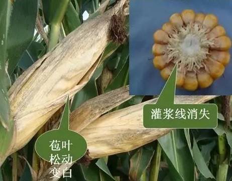 一般来说,玉米最佳收获期,从"三看"中可以得知:籽粒乳线开始消失,果穗苞叶枯黄并松动,植株绿叶不超过5片时,这时收获玉米最适宜,是玉米最佳的收获期,产量高,品质好,效益大。品种间可能会略有差异,请综合判断。一看乳线位置玉米籽粒灌浆充实的顺序是:果穗中部快于下部,下部又快于上部。从一个籽粒看:从籽粒顶部开始向基部充实。在灌浆充实的过程中,从籽粒胚的背面可以看到籽粒顶部向基部的颜色由深变线,其中有一条