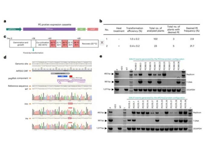 加速植物育种以应对多变的种植条件,对于精确和高效的基因组编辑有很高的需求。Prime editing(PE)是一种基于CRISPR–Cas系统允许在体内组装多种类型的精确DNA改变,低脱靶率低的一种基因编辑方法。PE系统已成功地应用于单子叶植物,然而在整个植株水平上,双子叶的PE表现非常低,实际上并不成功。人们对该技术不断改进,例如:PE2max的配置、“翻转和延伸”引物编辑引导RNA(pegRN