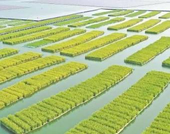 △8月22日,凤台县顾桥镇采煤沉陷区水面上,50亩漂浮式绿色稻田长势喜人中国南方一片曾经的采煤沉陷区上,一批试种水稻品种完成头茬收割。水中浮田上,沉甸甸的稻穗从稻杆中抽出后微微垂下,不时有鱼跃出水面。曾经沉寂的采煤沉陷区,如今是生机勃勃的水域。这个试图实现“水面种植水稻,水下渔业养殖”的采煤地表沉陷浅水区种植养殖项目,由淮河能源控股集团和安徽理工大学合作完成。项目位于安徽省淮南市凤台县顾桥镇,涵盖