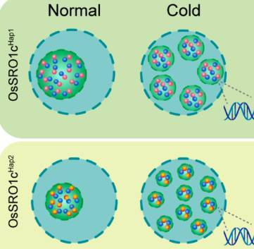 2024年8月22日,华中农业大学作物遗传改良全国重点实验室水稻团队非生物逆境课题组(熊立仲教授团队)在Molecular Plant在线发表了题为“The OsSRO1c-OsDREB2B complex undergoes protein phase transition to enhance cold tolerance in rice”的研究论文。该研究克隆并鉴定了一个新的水稻耐冷基因Os
