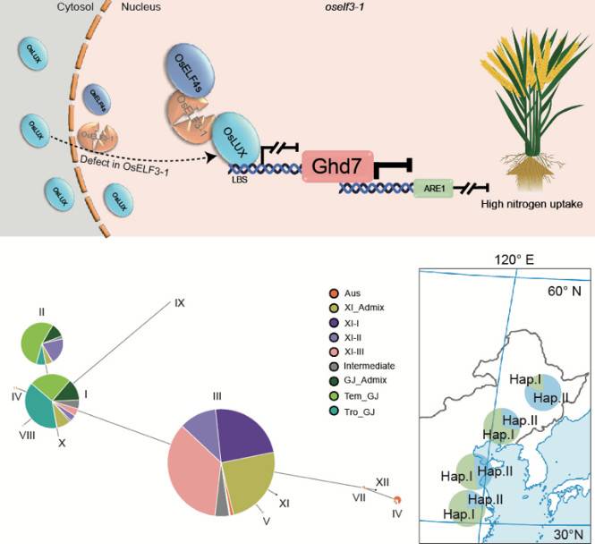 近日,沈阳农业大学水稻研究所联合辽东学院在Plant Physiology杂志发表了题为“EARLY FLOWERING3-1 represses Grain number, plant height, and heading date7 to promote ABC1 REPRESSOR1 and regulate nitrogen uptake in rice”的研究论文,报道了OsEC-Gh