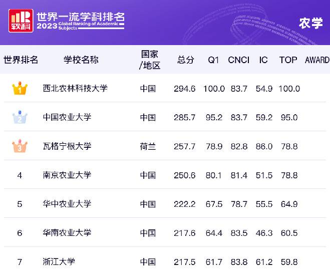 高等教育评价专业机构软科正式发布2023“软科世界一流学科排名”(ShanghaiRanking's Global Ranking of Academic Subjects)。2023年排名覆盖55个学科,涉及理学、工学、生命科学、医学和社会科学五大领域。此次排名的对象为全球5000余所大学,共有来自104个国家和地区的1900余所高校最终出现在各个学科的榜单上。农学学科全球高校完整排名:
