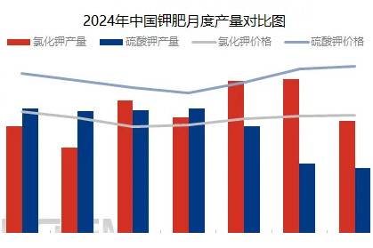 2024年,国内钾肥的总供应量处于增加的状态,但反观国产钾方面,氯化钾与硫酸钾呈现了相悖的走势,国产氯化钾的产量逐渐下降,反而硫酸钾的产量在不断增加。在2024年1-7月份,国产氯化钾的产量达到了321.6万吨,与去年同期相比减少幅度在10.53%;硫酸钾的产量在275.68万吨,与去年同期相比增幅在27.11%。国产钾肥的产量增减较为明显。国产氯化钾厂家目前多处于整合的阶段,青海盐湖以及格尔木藏