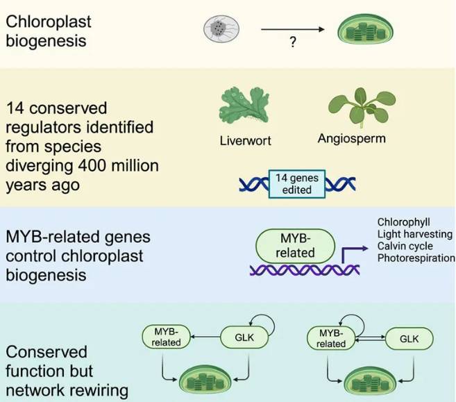 光合作用是生命的基础,在真核生物中,它发生在叶绿体中。普遍认为,叶绿体起源于10多亿年前开始的光合原核生物和异养真核生物之间的内共生。提高光合效率被认为是作物改良的重要目标。但是,为了设计这一关键过程,需要提高对光合作用基因调控网络的认知。叶绿体生物发生依赖于转录因子的调控,GOLDEN2-LIKE(GLK)家族转录因子是其主要调节因子。但glk突变体仍含有残留叶绿素,表明还有其他蛋白质参与其中。