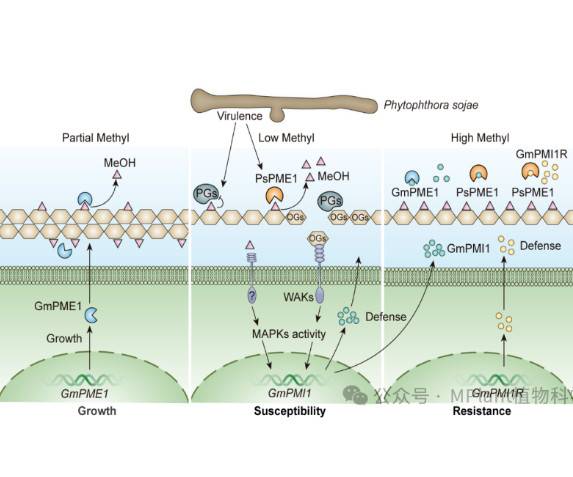 在植物与病原菌的长期斗争中,效应子是病原菌攻击寄主植物的武器,病原菌分泌效应子攻击植物的免疫系统导致植物感病。植物进化出精细、复杂的免疫系统,通过识别病原菌效应子激活植物抗性从而保护自身免受侵害。植物的细胞壁由高度复杂的纤维素、半纤维素、果胶聚糖结构组成,是病原菌成功入侵植物需要突破的重要防线。病原菌在侵染植物的早期分泌的效应子中包含大量的细胞壁降解酶(cell wall degrading en