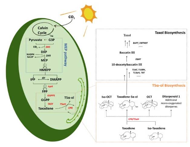遇见/摘要2024年7月16日,上海交通大学Bio-X研究院的马钢研究团队在生物质能源TOP期刊Biotechnology for Biofuels and Bioproducts上发表题为“Engineering cyanobacteria as a new platform for producing taxol precursors directly from carbon dioxide