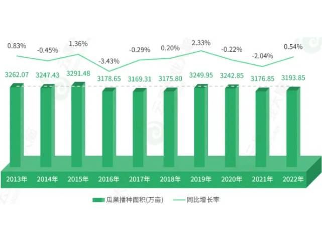 核心观点1. 从生产规模变化趋势来看,2013年至2022年,中国果园面积增长了2949.3万亩、增幅约为17.8%,年均复合增长率约为1.84%;瓜果播种面积下降了68.22万亩、降幅约为2.09%。中国水果产量增长了8548.14万吨、增幅约为37.58%,年均复合增长率约为3.61%;其中,园林水果产量增长了8138.92万吨,对全国水果产量增长的贡献率达95.21%,瓜果产量增长了409.