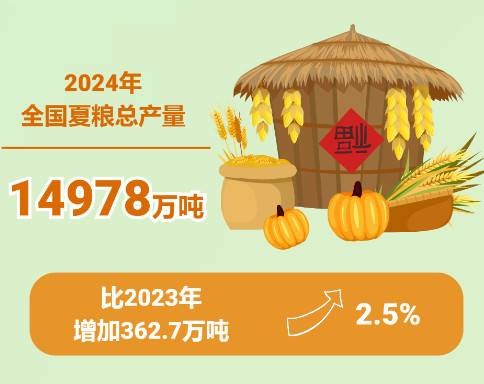 国家统计局7月12日公布我国2024年全国夏粮播种面积、单位面积产量、总产量数据:根据对全国25个夏粮生产省(区、市)的调查,2024年全国夏粮播种面积、单位面积产量、总产量如下:一、全国夏粮播种面积26613千公顷(39920万亩),比2023年增加4.5千公顷(6.8万亩),保持稳定。其中小麦播种面积23091千公顷(34636万亩),比2023年增加31.7千公顷(47.5万亩),增长0.1