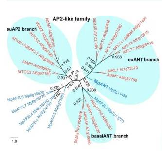 为了适应陆地环境,陆生植物进化出了以分生组织(meristem)为核心的器官发生机制。分生组织是由分化程度较低而分裂旺盛的细胞群组成。分生组织通常包含位于中央的干细胞和通过干细胞分裂形成的过渡细胞,过渡细胞的分裂分化进一步形成各种器官(Nat. Rev. Mol. Cell Biol. 2007, 8:345–354)。在陆生植物的进化过程中,分生组织的形态由简单结构发展为复杂结构,细胞类型不断增