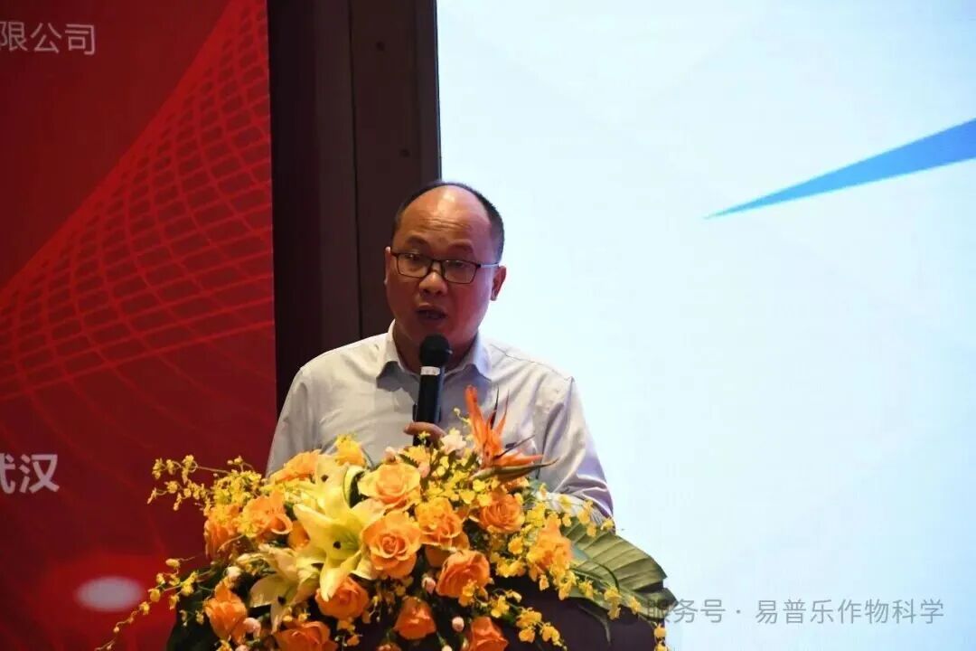 紧接着,易普乐作物科学销售总监唐秋荣先生正式发布了公司2026年度战略新产品。围绕企业“作物生理健康”的核心战略,他重点介绍并深入讲解了“壤歌酶肽肥”、“重美生物菌剂”、“丰天乐大量元素水溶肥”、“康乐收大量元素水溶肥”的前期试验示范与推广成果,展示了其卓越的应用表现。