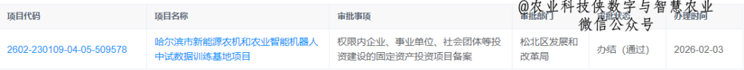 日前,据黑龙江省投资项目审批平台消息,由哈尔滨工业大学人工智能研究院有限公司主导建设的“新能源农机和农业智能机器人中试平台(中试数据训练基地)”正式审批通过。项目总投资1亿元,将通过“室内研发测试空间+田间综合验证基地”两大载体,打造覆盖技术研发—样机试制—检测认证—田间验证—企业孵化的全链条中试服务体系,为智能农机装备、农业机器人及农业人工智能的规模化落地提供关键支撑。