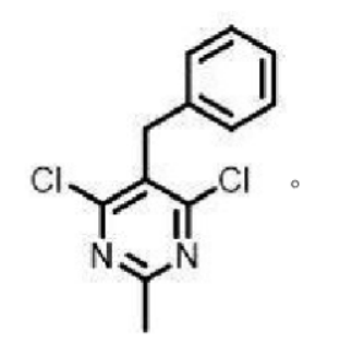本发明公开了一种适合种子包衣的抗酰胺除草剂类苄基嘧啶化合物及其应用。一种苄基嘧啶化合物,4,6‑二氯‑5‑苄基‑2‑甲基嘧啶,C11H8Cl2N2,分子量239.10。所述的苄基嘧啶化合物在制备抗酰胺类除草剂的种子包衣剂中的应用。本发明充分聚焦于长江中下游机播、直播种子在田间逆境环境中如何抵御除草剂的药害,通过人工合成的方式针对性设计新的适应种子包衣的抗酰胺类除草剂化合物4,6‑二氯‑5‑苄基‑2‑甲基嘧啶,并将该化合物进行纳米化研磨制成种子包衣剂,最后通过包衣的方式,使种子达到显著的抗除草剂药害,提高种子出苗率和成苗率,方法简单明了,易于掌握,可操作性强。