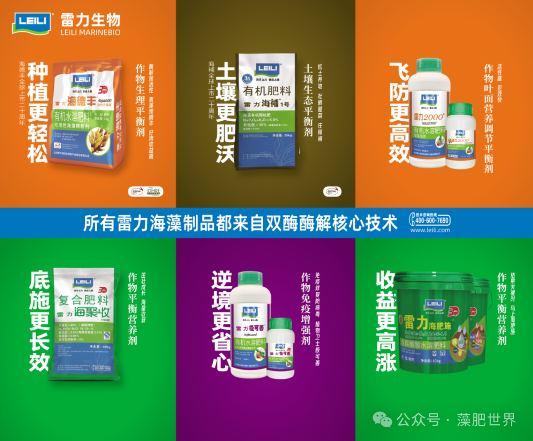 雷力深耕生物刺激素与海藻肥领域三十余年,1998年公司的海藻肥产品-雷力2000海藻功能液肥获科技部科技成果鉴定,达到国际先进水平 。“褐藻双寡糖作物免疫调节剂”重大研究项目获北京市食品安全重大专项支持,运用合成生物技术,研发多种海洋生物寡糖工具酶和功能微生物新菌株,构建涵盖海藻双酶解提取物、黄腐植酸、氨基酸、壳寡糖及功能微生物制剂等十大类100多种精准功效产品矩阵,并历经30余年全球80个国家种植者广泛应用验证,核心产品雷力海德丰、雷力2000、雷力海補为品类开创产品,拥有科技成果鉴定、高科技产品认证,REACH、CE欧盟准入认证,以及美国OMRI、ECOCERT等国际有机认证,获得北京市科学技术奖、神农中华农业科技奖、中国民营科技发展贡献奖等荣誉。