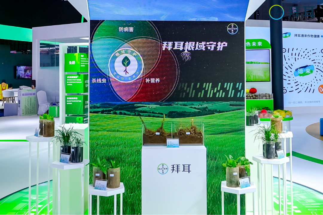 在创新产品提供全方位支持的基础上,拜耳进一步将目光投向作物生长的根本——根系健康。此前拜耳在业内首推“根域”概念,依托根域守护品牌为作物根系创造优异的生长环境。本届进博会上,拜耳首展升级后的根域守护品牌2.0版本,进一步形成“根域守护三环”,在“杀线虫、防病害、补营养”三方面匹配更具针对性的产品并形成协同效应,为作物打造更平衡、更健康的根域生态。