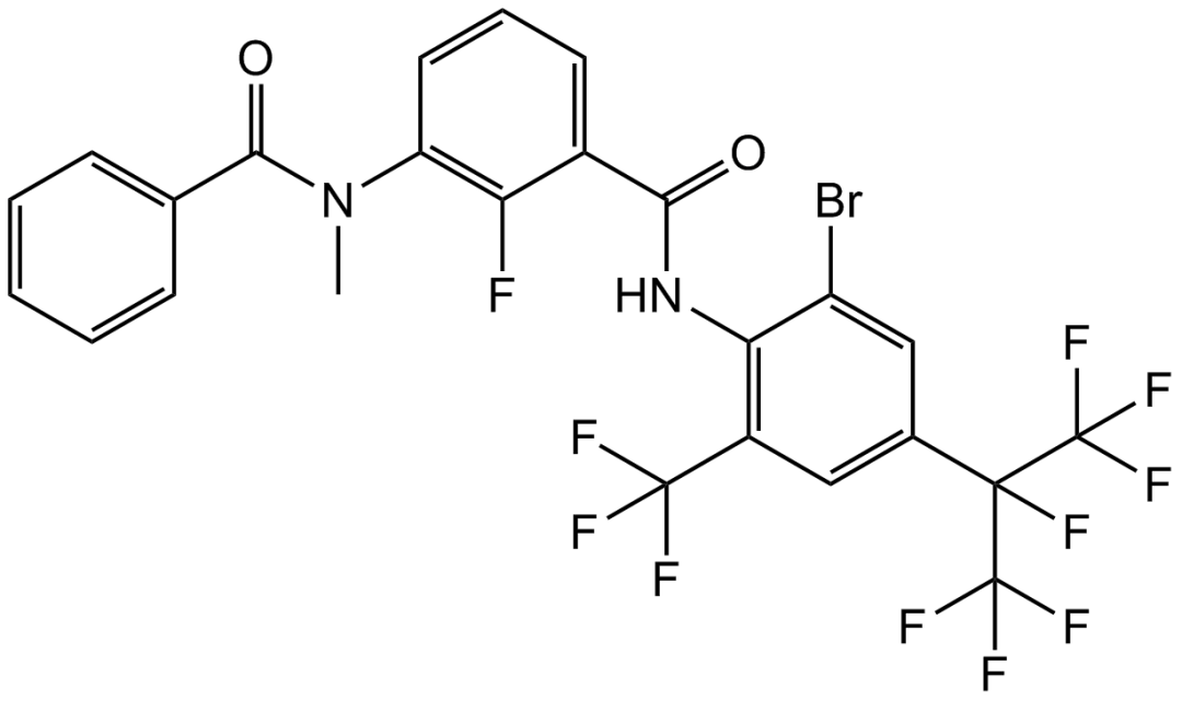 2020年6月,国际标准化组织(ISO)农药命名技术委员会临时批准了环丙氟虫胺的英文通用名cyproflanilide,其后获得正式批准。其试验代号:CAC-I-785;IUPAC化学名称:N-{2-溴-4-[1,2,2,2-四氟-1-(三氟甲基)乙基]-6-(三氟甲基)苯基}-3-[N-(环丙基甲基)-4-氟苯甲酰氨基]-2-氟苯甲酰胺;CAS登录号:2375110-88-4;分子式:C28H17BrF12N2O2;相对分子质量:721.332;结构式如图2。