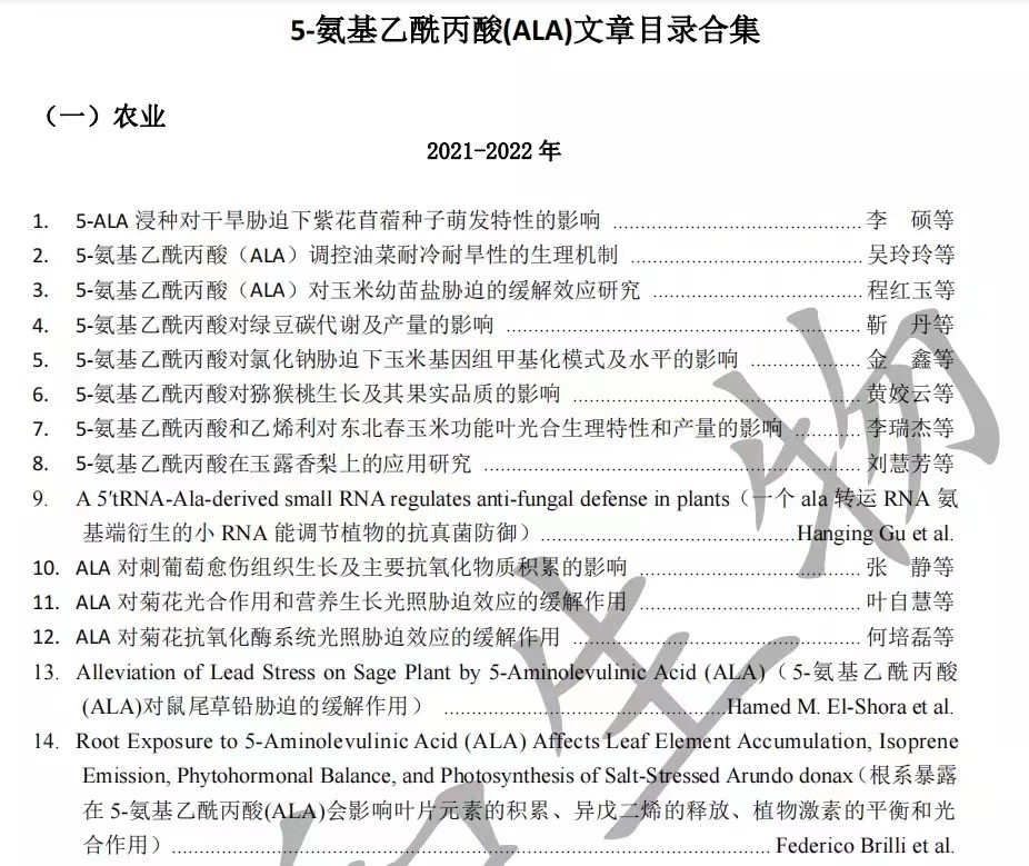 汉和生物通过近十年对5-ALA的研究,查询了超过226多篇的文献报道及试验报告,结果表明: