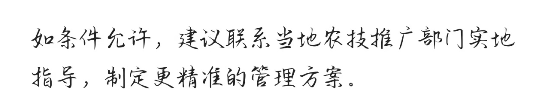 看着是面面俱到,结果下面有一行小字,让我“哭笑不得”:“如条件允许,建议联系当地农技推广部门实地指导,制定更精准的管理方案。”