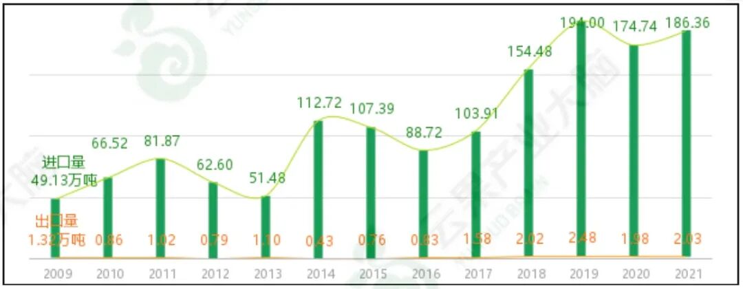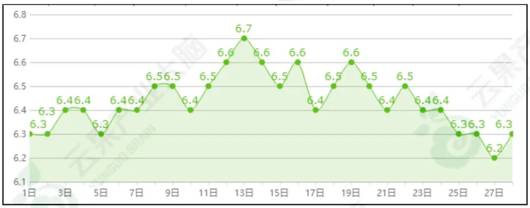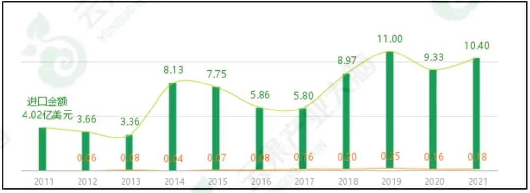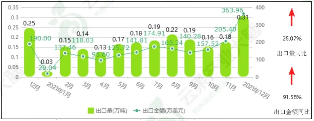 (数据来源:农业农村部农垦局 制图:云果产业大脑、农小蜂)2022年2月,全国香蕉主产区总产量为60.0万吨,与上月相比,减少了25.8%;与去年同期相比,减少了1.6%。从历史数据来看,2021年2月~2022年2月,全国香蕉主产区总产量从61.0万吨波动至60.0万吨;每月对应的增加/减少幅度也从-27.4%变化至-25.8%;近一年峰值为2021年11月的126.0万吨,谷值为2022年2月的60.0万吨。图表2:全国香蕉主产区产地综合平均价格月度走势及本月变化(数据来源:农业农村部农垦局 制图:云果产业大脑、农小蜂)2022年2月,全国香蕉主产区产地综合平均价格为3.0元/公斤,与上月相比,下降了8.8%;与去年同期相比,基本持平。从历史数据来看,2021年2月~2022年2月,全国香蕉主产区产地综合平均价格从3.0元/公斤波动至3.0元/公斤;每月对应的上涨/下降幅度也从1.6%变化至-8.8%;近一年峰值为2022年1月的3.3元/公斤,谷值为2021年5月的1.8元/公斤。(数据来源:农业农村部农垦局 制图:云果产业大脑、农小蜂)细分产区来看,2022年2月,全国香蕉主产区按产量从高到低排名依次是:云南省33.0万吨、广东省25.0万吨、海南省1.0万吨、福建省1.0万吨,广西壮族自治区因季节原因无产量;按产地均价从高到低排名依次是:云南省3.5元/公斤、海南省3.4元/公斤、福建省3.0元/公斤、广东省2.3元/公斤。(数据来源:农业农村部农垦局 制图:云果产业大脑、农小蜂)2022年2月,广东省香蕉产量为25.0万吨,与上月相比,减少了10.7%;与去年同期相比,减少了3.9%。从历史数据来看,2021年2月~2022年2月,广东省香蕉产量从26.0万吨波动至25.0万吨;每月对应的增加/减少幅度也从-7.1%变化至-10.7%;近一年峰值为2021年7月的43.0万吨,谷值为2022年2月的25.0万吨。(数据来源:农业农村部农垦局 制图:云果产业大脑、农小蜂)2022年2月,广东省香蕉产地平均价格为2.3元/公斤,与上月相比,上涨了9.5%;与去年同期相比,下降了17.9%。从历史数据来看,2021年2月~2022年2月,广东省香蕉产地平均价格从2.8元/公斤波动至2.3元/公斤;每月对应的上涨/下降幅度也从3.7%变化至9.5%;近一年峰值为2021年2月的2.8元/公斤,谷值为2021年5月的1.3元/公斤。(数据来源:农业农村部农垦局 制图:云果产业大脑、农小蜂)2022年2月,广西壮族自治区因季节原因无香蕉产量。从历史数据来看,2021年1 月~2022年1月,广西壮族自治区香蕉产量从26.0万吨波动至20.0万吨;每月对应的增加/减少幅度也从-61.2%变化至-73.0%;近一年峰值为2021年12月的74.0万吨,谷值为2021年4月的7.6万吨。图表7:广西壮族自治区香蕉产地平均价格月度走势及本月变化(数据来源:农业农村部农垦局 制图:云果产业大脑、农小蜂) 从价格历史数据来看,2021年1月~2022年1月,广西壮族自治区香蕉产地平均价格从3.0元/公斤波动至3.6元/公斤;每月对应的上涨/下降幅度也从0%变化至38.5%;近一年峰值为2022年1月的3.6元/公斤,谷值为2021年9月的2.0元/公斤。(数据来源:农业农村部农垦局 制图:云果产业大脑、农小蜂)2022年2月,云南省香蕉产量为33.0万吨,与上月相比,增加了10%;与去年同期相比,基本持平。从历史数据来看,2021年2月~2022年2月,云南省香蕉产量从33.0万吨波动至33.0万吨;每月对应的增加/减少幅度也从-17.9%变化至10.0%;近一年峰值为2021年8月、2021年9月的4.0万吨,谷值为2021年3月的39.0万吨。(数据来源:农业农村部农垦局 制图:云果产业大脑、农小蜂)2022年2月,云南省香蕉产地平均价格为3.5元/公斤,与上月相比,下降了16.7%;与去年同期相比,上涨了9.4%。从历史数据来看,2021年2月~2022年2月,云南省香蕉产地平均价格从3.2元/公斤波动至3.5元/公斤;每月对应的上涨/下降幅度也从%变化至-16.7%;近一年峰值为2022年1月的4.2元/公斤,谷值为2021年9月的2.1元/公斤。(数据来源:农业农村部农垦局 制图:云果产业大脑、农小蜂)2022年2月,海南省香蕉产量为1.0万吨,与上月相比,增加了11.1%;与去年同期相比,基本持平。从历史数据来看,2021年2月~2022年2月,海南省香蕉产量从1.0万吨波动至1.0万吨;每月对应的增加/减少幅度也从0.0%变化至11.1%;近一年峰值为2021年5月、2021年6月的35.0万吨,谷值为2021年12月、2022年1月的0.9万吨。图表11:海南省香蕉产地平均价格月度走势及本月变化(数据来源:农业农村部农垦局 制图:云果产业大脑、农小蜂)2022年2月,海南省香蕉产地平均价格为3.4元/公斤,与上月相比,上涨了21.4%;与去年同期相比,上涨了70%。从历史数据来看,2021年2月~2022年2月,海南省香蕉产地平均价格从2.0元/公斤波动至3.4元/公斤;每月对应的上涨/下降幅度也从%变化至21.4%;近一年峰值为的3.4元/公斤,谷值为2021年9月的1.2元/公斤。(数据来源:农业农村部农垦局 制图:云果产业大脑、农小蜂)2022年2月,福建省香蕉产量为1.0万吨,与上月相比,减少了50%;与去年同期相比,基本持平。从历史数据来看,2021年2月~2022年2月,福建省香蕉产量从1.0万吨波动至1.0万吨;每月对应的增加/减少幅度也从%变化至-50.0%;近一年峰值为2021年 8月、2021年9月的10.0万吨,谷值为2021年2月、2021年3月、2021年4月、2021年5月、2021年6月、2022年2月的1.0万吨。图表13:福建省香蕉产地平均价格月度走势及本月变化(数据来源:农业农村部农垦局 制图:云果产业大脑、农小蜂)2022年2月,福建省香蕉产地平均价格为3.0元/公斤,与上月相比,基本持平;与去年同期相比,上涨了50%。从历史数据来看,2021年2月~2022年2月,海南省香蕉产地平均价格从2.0元/公斤波动至3.0元/公斤;每月对