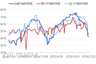 据隆众资讯统计,节后国内黄磷周产量仅为1.4567万吨,较节前下滑20.57%;产能利用率降至46.44%,较节前减少12.02个百分点,供应端收缩态势明显。分主产区来看,云南地区黄磷企业周均开工率下滑9.9个百分点至42.6%附近,贵州地区下滑10.4个百分点至47.7%附近,四川地区下滑幅度最大,达19.9个百分点至41.8%附近。与此同时,节后多数黄磷企业订单已签至月底,无明显出货压力,进一步加剧了市场供应紧张局面,企业挺价推涨的信心持续增强。