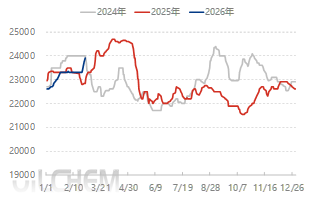 展望后市,黄磷市场短期内有望延续强势格局。从当前市场态势来看,多重利好因素仍将持续发酵:一方面供应紧张局面短期难以缓解。主产区企业节前检修减产效应仍在延续,黄磷企业控盘能力增强,惜售情绪仍在。另一方面成本与情绪双支撑仍在。消息面提振对磷化工板块的关注度显著提升。同时,枯水期黄磷电价、原料价格维持高位,对黄磷仍有刚性支撑。需要关注的是24500元/吨关口或将成为多空博弈焦点,当前市场情绪高涨,企业推涨意愿强烈,预计短期内价格将顺势上探24500元/吨关口,同样该价位也是下游市场心理关口,当前下游产品有意跟涨,若能有效突破并站稳,则上涨空间将进一步打开;若跟涨遇阻,则市场将进入消化涨幅阶段。