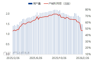 图1 2025-2026年黄磷市场产量、开工对比图