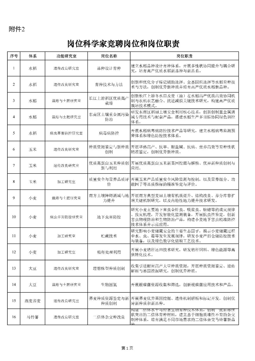 2.岗位科学家竞聘岗位和岗位职责