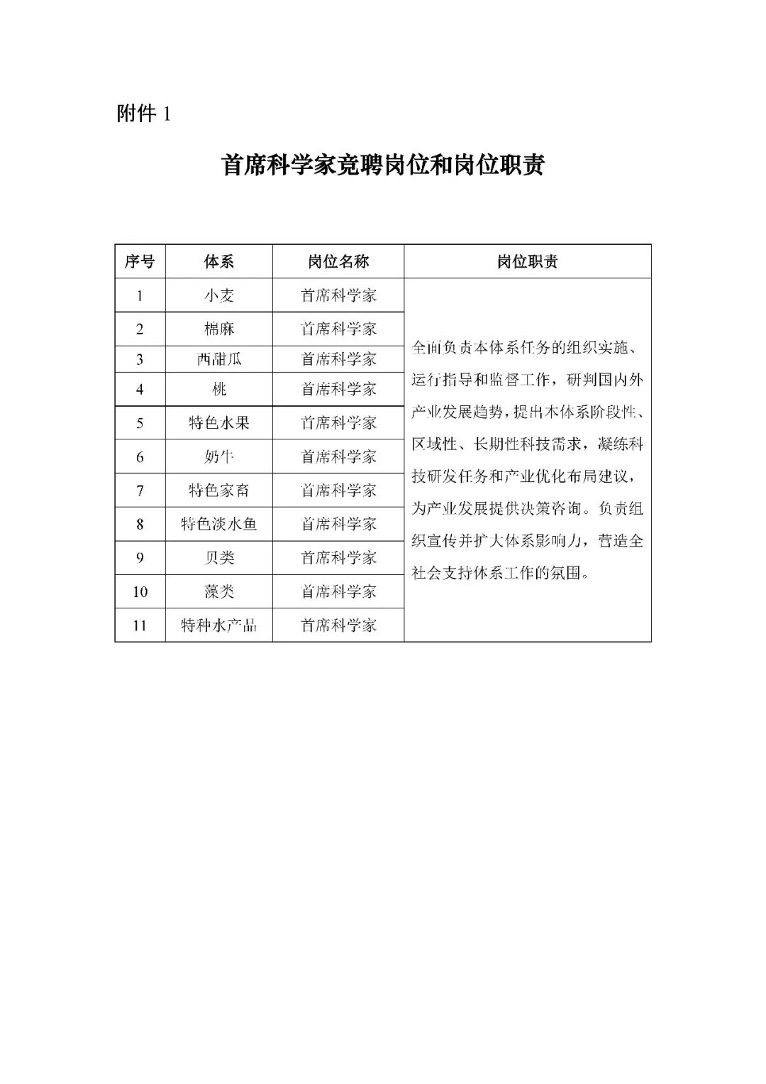 现代农业产业技术体系首席科学家和岗位科学家申报工作启动:11+153