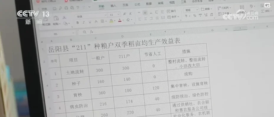 在岳阳县,记者看到一张承包500亩田和承包100亩田的对比表格,也印证了这种新模式的效果。2023年承包500亩田的农户,双季水稻加起来平均亩产1700斤,而承包100亩田的农户,双季稻平均亩产达到1800斤,每亩要比大户多收100斤谷子。