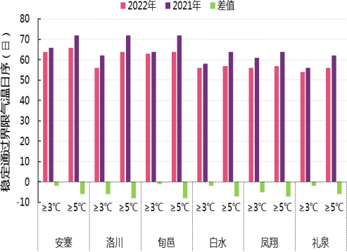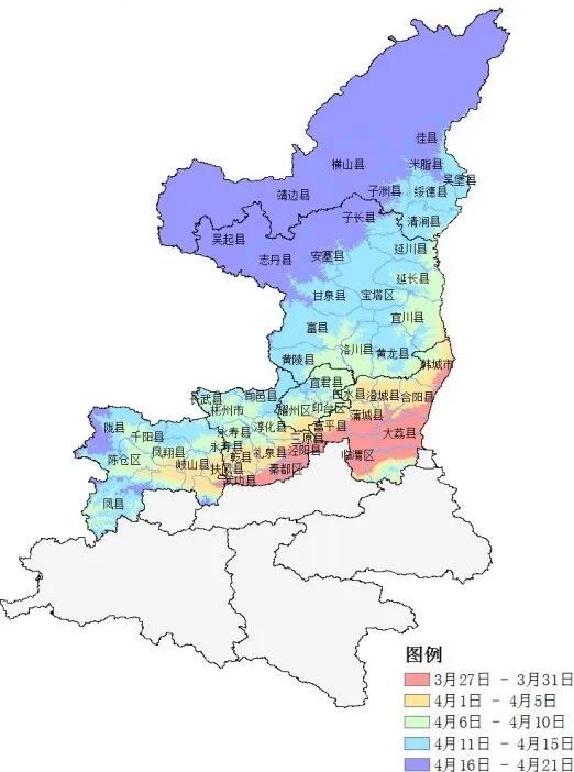 陕北、渭北西部及渭北东部偏北果区为冻害重点防御区域,4 月上中旬为重点防御时段。