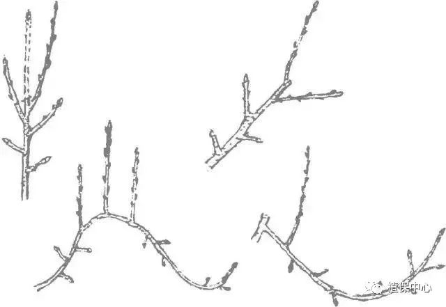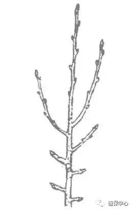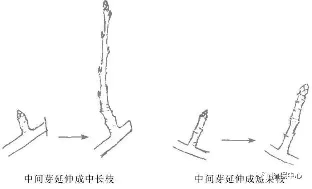 中间芽延伸生长,可成为结果枝,但若受较重的刺激,如重回缩,或生长势较旺,则延伸后只能成为发育枝。