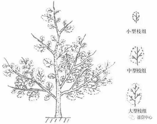 当主芽受到损伤时,副芽即可以萌发,副芽抽的枝较弱。极重截或重回缩时,副芽往往萌发。指在主干和中心干上分生的永久性的骨干枝树体骨架的组成部分。指在主干和中心干上分生的除主枝以外的、起辅养树体生长作用的大枝。指着生在中心干、主枝、侧枝及辅养枝等骨干枝上成组的结果枝,为独立的结果基本单位。结果枝组有大、中、小之分,也有形状上的差异。