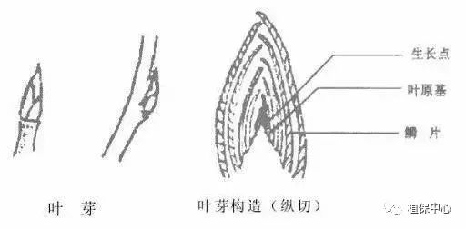 叶芽较瘦小,先端尖,鳞片绒毛较多,芽内仅含有枝叶原基,萌发后只能抽生枝叶。