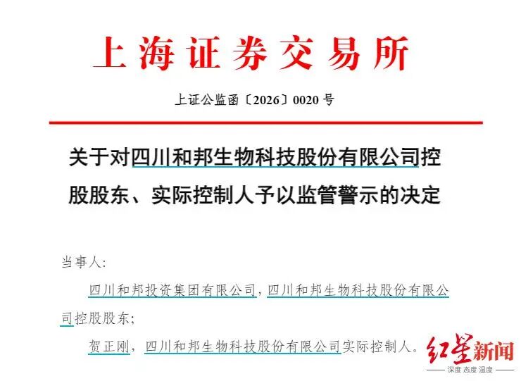 同日,上交所也发布《关于对四川和邦生物科技股份有限公司控股股东、实际控制人予以监管警示的决定》。经查明,和邦生物对2024年度向不特定对象发行可转换公司债券涉及控股股东和邦集团部分信息披露不准确。上交所对和邦集团、和邦生物实际控制人贺正刚予以监管警示。