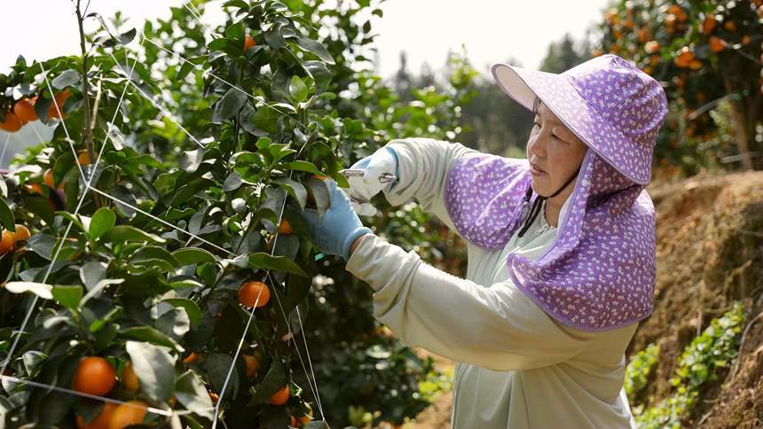果农正在采摘沙糖桔。 罗秋燕 摄