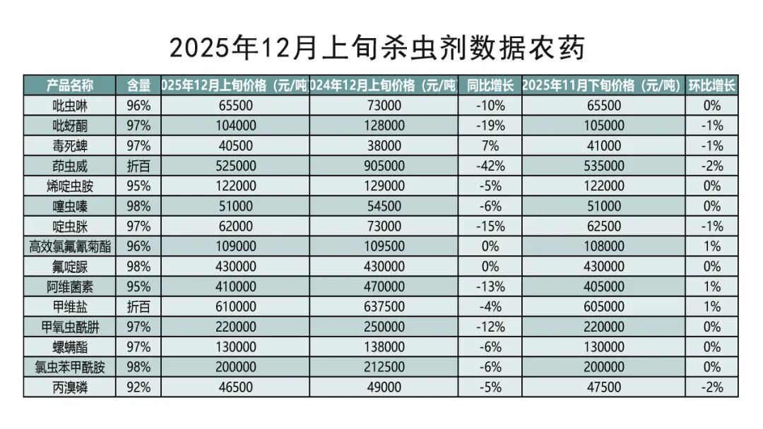 甲维盐等原药价格上涨,2,4-D、茚虫威、丙硫菌唑等原药价格下跌