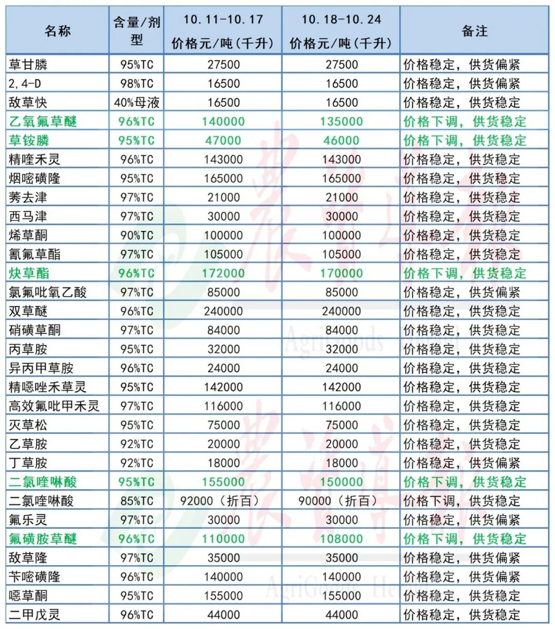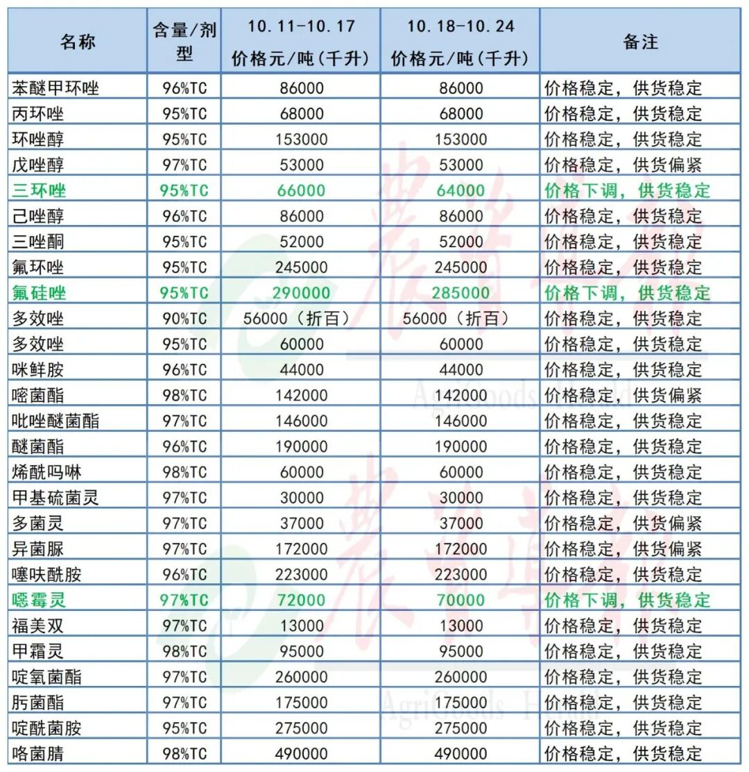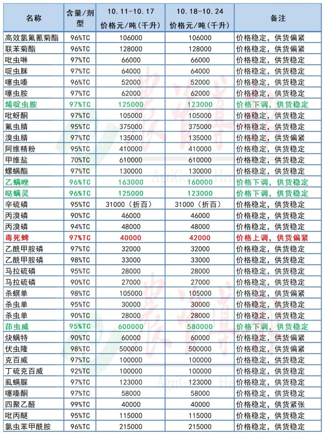 毒死蜱价格上涨!草铵膦、烯啶虫胺、氟硅唑等12种原药价格下跌