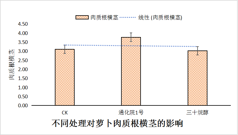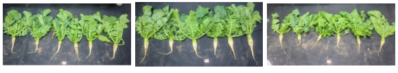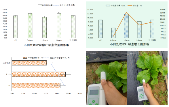 促进植株生长、绿叶试验(用量以原药计) 不同浓度通化院1号及对照药剂 处理后对白菜叶绿素增长率的影响(用量以原药计) 喷施通化院1号可刺激植物体内的生物酶活性,显著提高植株的光合作用,对于叶绿素含量的提升有促进作用。在同种浓度下,通化院1号的促进效果明显优于三十烷醇,推荐喷施的使用浓度为0.6ppm。 通化院1号,三十烷醇对萝卜肉质根的膨大有促进作用,相对于空白对照,喷施通化院1号萝卜肉质根的横茎增长率分别为21.5%,喷施三十烷醇萝卜肉质根的横茎增长率为15.05%。通化院1号的生物活性要高于三十烷醇。 促进光合作用,增产试验(用量以原药计) 喷施不同浓度的通化院1号,均可促进小青菜叶绿素含量的提高,分别提高小青菜叶片叶绿素含量11.57%、3.03%、21.19%。