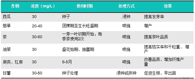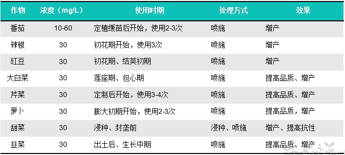 通化院1号8大功效 1. 促长壮苗 激活生物酶,加速物质的吸收和运转,提高叶绿素含量,增强光合作用,促进生长,苗壮苗健,抗病能力强。 2. 促进根系发达 具有明显的促根作用,用后能增强根系的扩展能力,诱导发根,促进根系发达,增强根系对养分的吸收,提高抗根病能力。 3.保花壮果 能促进作物花器的形成,促进传粉受精,保花保果,减少畸形果、促进幼果的发育与膨大。幼果期还能减少药剂对幼果的伤害,促进果面光洁,提高商品性。 4.促进作物早熟,改善品质 可促进作物提早成熟,如玉米﹑大豆、黄瓜﹑茄子﹑番茄等,一般可提早5~7天上市;能提高作物的成分含量,如氨基酸﹑蛋白质﹑还原糖﹑维生素等含量可得到提高。 5.促进转色 提升作物着色程度和色级,美果靓果,光洁果面。 6. 提高抗病抗逆能力 能明显提高植物体内过氧化物同工酶活性,增加细胞膜透性和细胞原生质流动性,可提高作物抗病抗寒能力。对提高作物抗病毒病能力效果明显。 7. 扶苗解害促康复 缓解药害、肥害和气候异常对作物的损伤,激活生物酶,加速物质的运转和代谢,促进受害植株康复,降低受害损失。 8. 增产 能促进作物碳氮代谢,提高碳氮比,增加ATP储存和积累、还能调节光合产物的运输、分配和积累,以此提高产量、增产。 通化院1号使用技术要求 通化院1号可在粉剂或液剂中添加使用,一般用于种子处理、叶面喷施、冲施肥、滴灌肥中。浸种:用3~60ppm药液浸种;喷施:10~30ppm;冲施滴灌:10-30g/亩;海产养殖:用70 ~ 140ppm药液浸苗。 1. 在粮食作物上的应用 2.在经济作物上的应用 3.在蔬菜作物上的应用 4.在果树作物上的应用 5.在食用菌上的应用 6.在海产作物上的应用