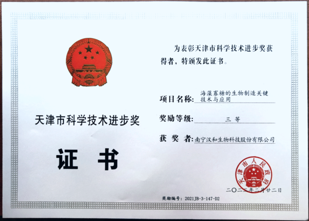 该技术项目2022年荣获“天津市科学技术进步奖三等奖”。