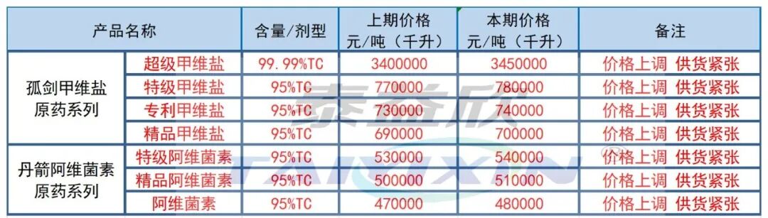 上周国内外市场需求进一步回暖,市场交投氛围向好。受上游原材料价格波动上行影响,下游企业备货意愿显著增强,叠加外贸询单量持续增加,整体成交情况稳步走高。目前国内下游贸易商及终端市场已出现明显的抢货潮,备货情绪高涨;若海外市场同步感知原药价格上调,进而出现恐慌性补库、集中抢货现象,与此同时受中东战事的不确定性,预计短期内多数产品价格将迎来进一步上涨的趋势。