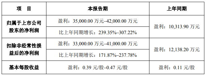经公司财务部门初步测算,2025年,联化科技归属于上市公司股东的净利润3.50亿~4.20亿元,比上年同期(1.03亿元)增长239.35%~307.22%;归属于上市公司股东的扣除非经常性损益后的净利润3.30亿~4.10亿元,比上年同期(1.21亿元)增长171.87%~237.78%;基本每股收益0.39~0.47元/股,上年同期为0.11元/股。