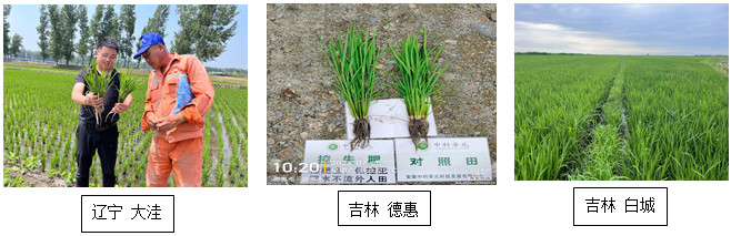 水稻前期表现:苗期根系生长快,新生白根多,有效分孽数量增加,茎秆粗壮,叶片厚绿,水绵发生明显减少。
