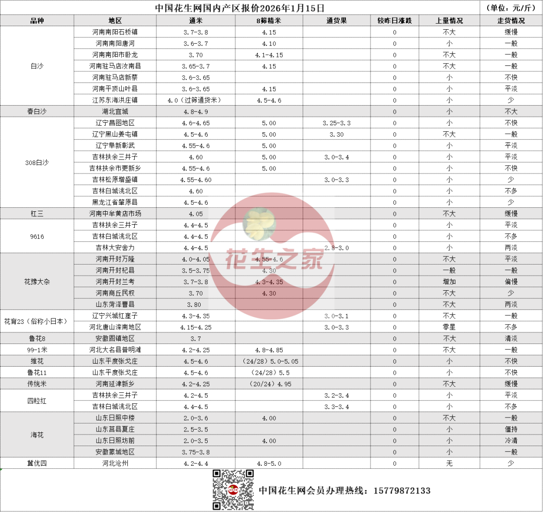 1月15日 花生产区一线报价