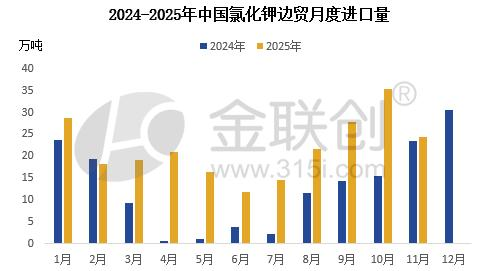 从进口贸易方式来看,11月份边贸进口总量达到24.46万吨,这一数据表明边贸渠道在该月对氯化钾进口的贡献依旧较为突出。而1-11月份边贸进口总量更是高达239.14万吨,占总进口量的21.44%,这一比例相当可观。这不仅充分体现了边贸进口在氯化钾进口中的重要地位,也反映出边贸渠道在保障国内氯化钾供应方面具有独特优势。