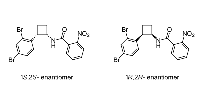 英文化学名称:N-[(1S,2S)-2-(2,4-dibromophenyl)cyclobutyl]-2-nitrobenzamide and 20-0% of the (1R,2R)-enantiomer